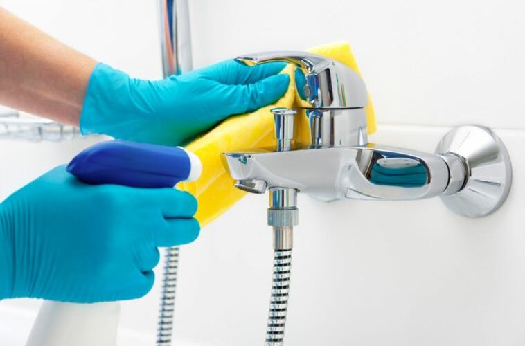 Zuerst sind hartnäckige Zahnpasta- und Seifenreste dran. Die können wir mit etwas Badreiniger vom Waschbecken wegschrubben. Wer auf säurehaltige Chemiekeulen verzichten möchte, kann auf natürliche Reiniger zurückgreifen. Zu den hilfreichen Hausmitteln gehört beispielsweise Essig. Essig hilft zusätzlich gegen Kalkflecken (wen der Geruch stört, macht das Fenster auf und lässt frische Luft rein). Schnell noch den Wasserhahn mit einem essiggetränkten Putztuch abgewischt und schon hat Kalk keine Chance mehr.